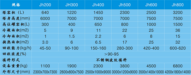 說明:酒精回收塔適用于制藥、食品、輕工、化工、 等行業的稀酒精回收,具有節能、環保、降低生產成本、 提高效率的優點。本裝置可將30度~50度的稀酒精蒸 餾到93度~95度殘液排放含醇度底符合環保要求。   本裝置采用高效不銹鋼波紋填料,接觸物料部分全部 采用SUS304不銹鋼 符合GMP標準
